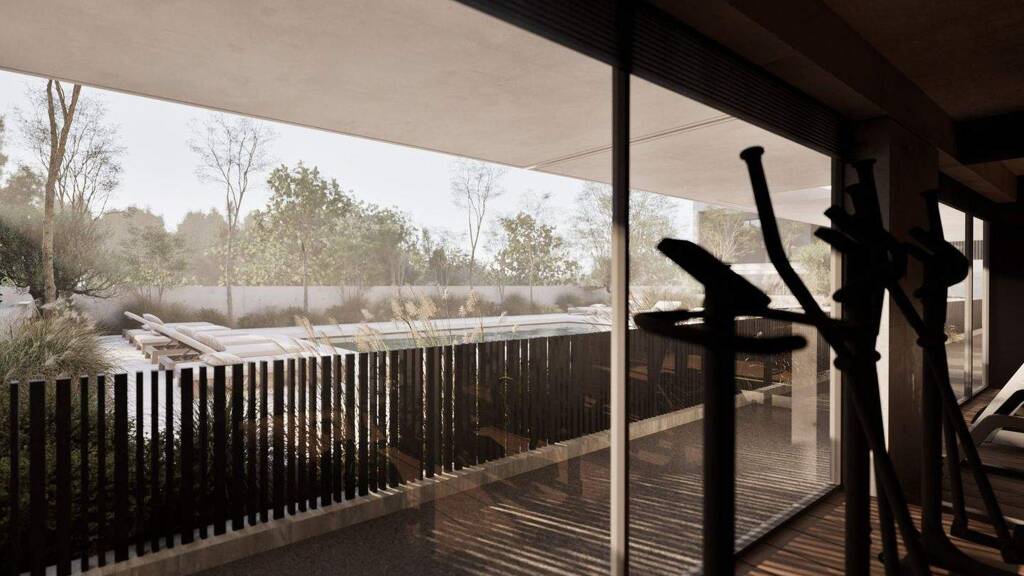 - Gemeinschaftspool; - Privater Fitnessraum; - Überdachte Veranden und Privatparkplätze; - Vorrichtungen für Klimaanlage und Fußbodenheizung - Auffälliges zeitgenössisches Design mit natürlichen Materialien; - Sichere Wohnanlage mit Zugangskontrolle.