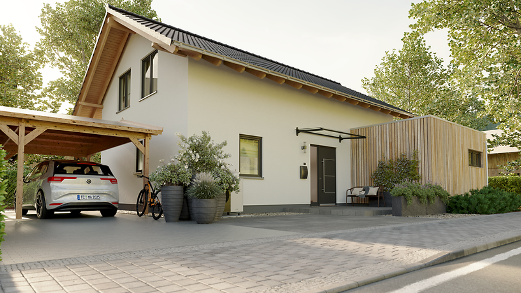 Großzügige Räume, helle Wohnbereiche und eine klassische Dachform machen dieses Haus zu einem echten Allrounder für Familien, Paare und Bauherren, die Wert auf Funktionalität und Wohnkomfort legen.