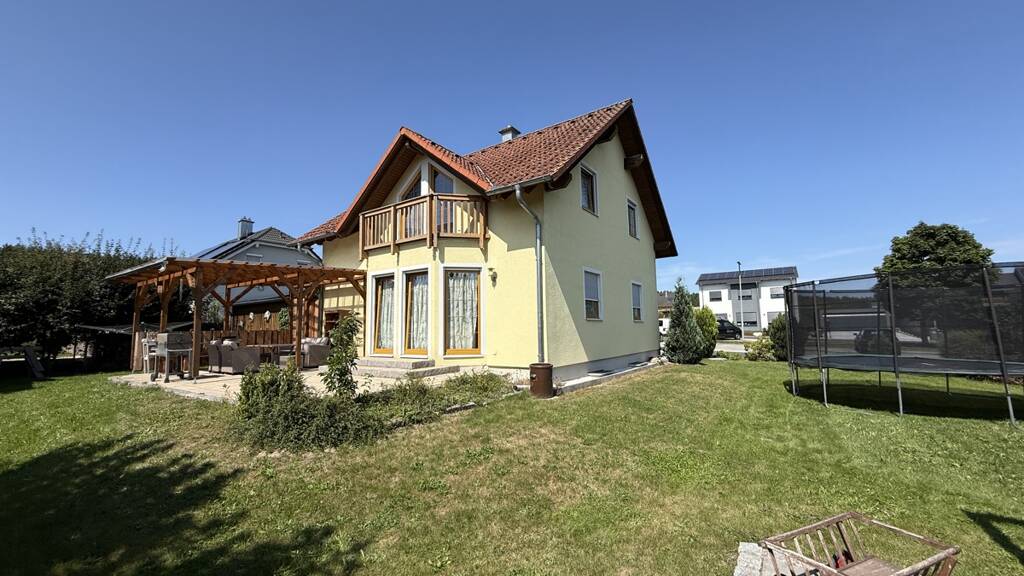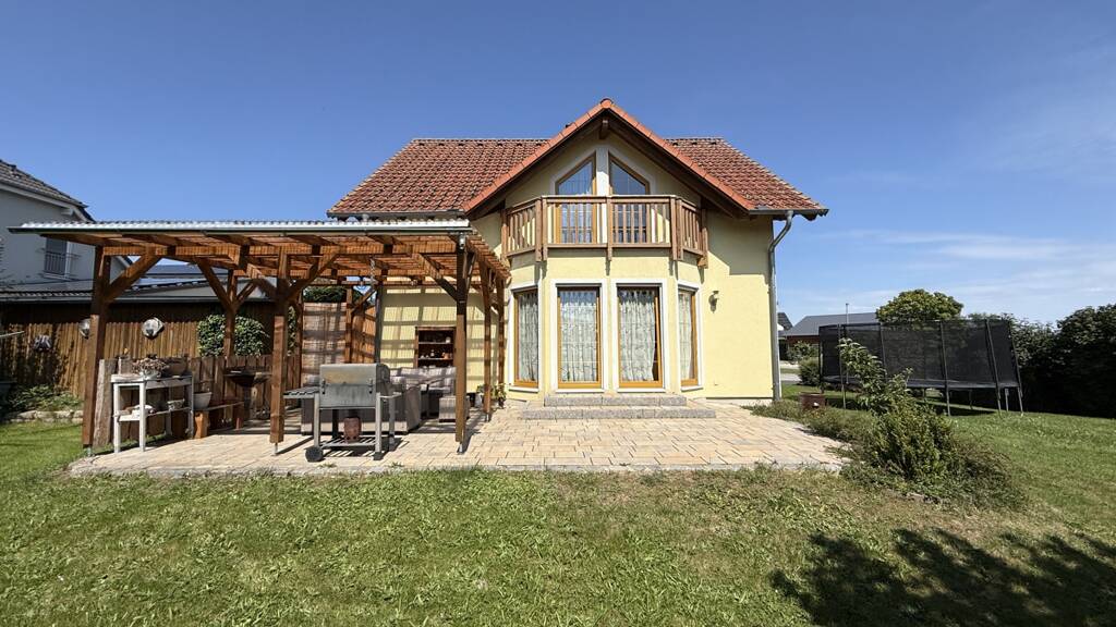- Einfamilienhaus mit 4 Zimmern - Grundstücksfläche: 856 m² - Wohnfläche: 122 m² - Baujahr: 2005 - Energieeffizienzklasse: C - Balkon vorhanden - Keller vorhanden - Außenbereich mit überdachter Terrasse - Gepflegter Garten