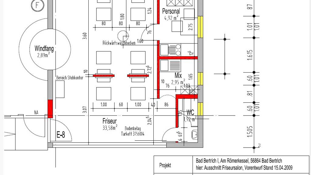 Zur Vermietung steht ein komplett eingerichteter Friseursalon mit 5 Bedienungsplätzen und einem zentralen Waschplatz auf einer Fläche von ca. 43 qm aufgeteilt in Ladenfläche, WC und Kaffeeküche.