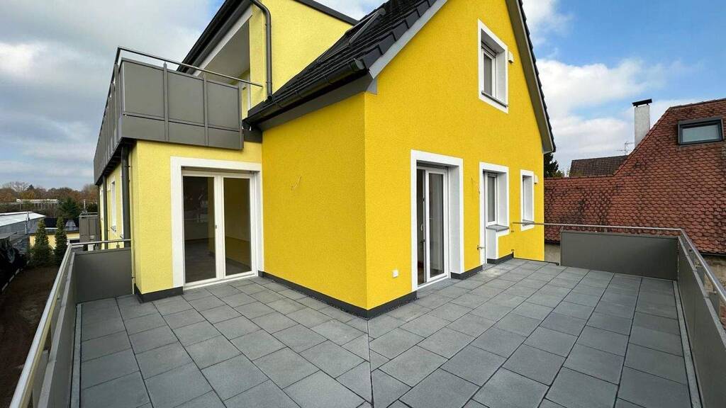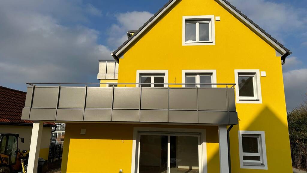 -Moderne und exklusive kleine Wohnanlage auf gehobenen Niveau -Verschiedene Wohntypen (Grundrisse) mit Privatgärten im Erdgeschoss, großzügige Balkone im 1. Obergeschoss sowie traumhafter Dachterrasse in der obersten Wohneinheit mit Blick ins Grüne -Massive Bauweise mit entsprechender Wärmedämmung -Ansprechendes Treppenhaus mit Hauseingangsbereich in ansprechendem Design -Hochwertiger Ausstattungsstandard (Wohnräume mit Bodenfliesen Parkettcharakter hellbraun; Bad: Wandfliesen raumhoch weiß matt, Bodenfliesen schwarz, rektifizierte Kanten, Sanitärgegenstände weiß, Waschtischunterschrank und Spiegelschrank; Flur, Gäste-WC, Abstellraum Bodenfliesen schwarz -Lichtdurchflutete, freundliche Räumlichkeiten -Funktionelle Grundrisskonzeption (offenes Wohnen / Essen / Kochen) -Großzügige Fensterfronten mit Schiebetür-Elementen -Kunststoff-Fenster mit 3-fach Verglasung; Türen weiß mit modernen Griffen (Hebeschiebetüren und Dachflächenfester mit 2-fach Verglasung) -Elektrisch steuerbare Rollos an allen Fenster- bzw. Balkon- und Terrassen-Elementen