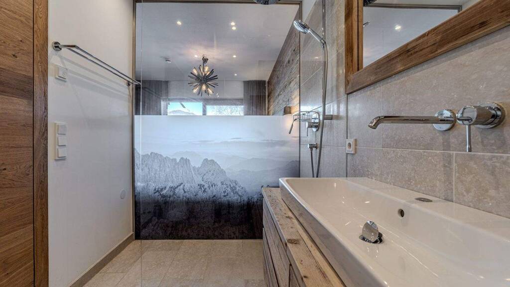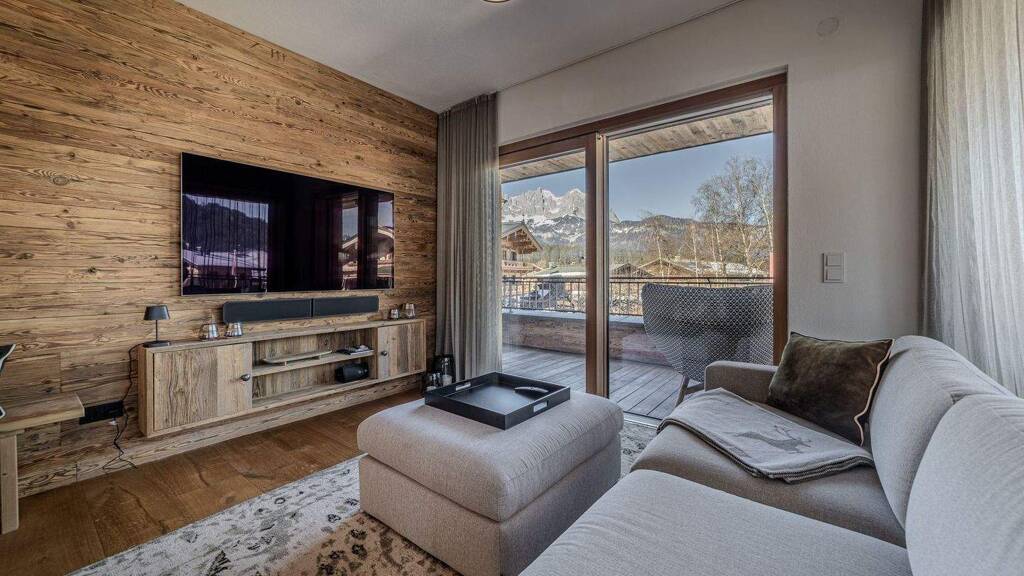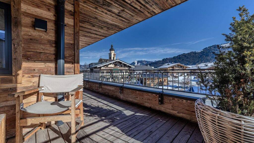 Ein besonderes Highlight stellt die umlaufende Panoramaterrasse mit Heizstrahler dar, die vom Wohnbereich als auch von den Schlafzimmern aus zugänglich ist und einen beeindruckenden Ausblick auf das Massiv des Wilden Kaisers sowie das Kitzbüheler Horn eröffnet - ein Ort, der zu jeder Jahreszeit zum Verweilen einlädt.