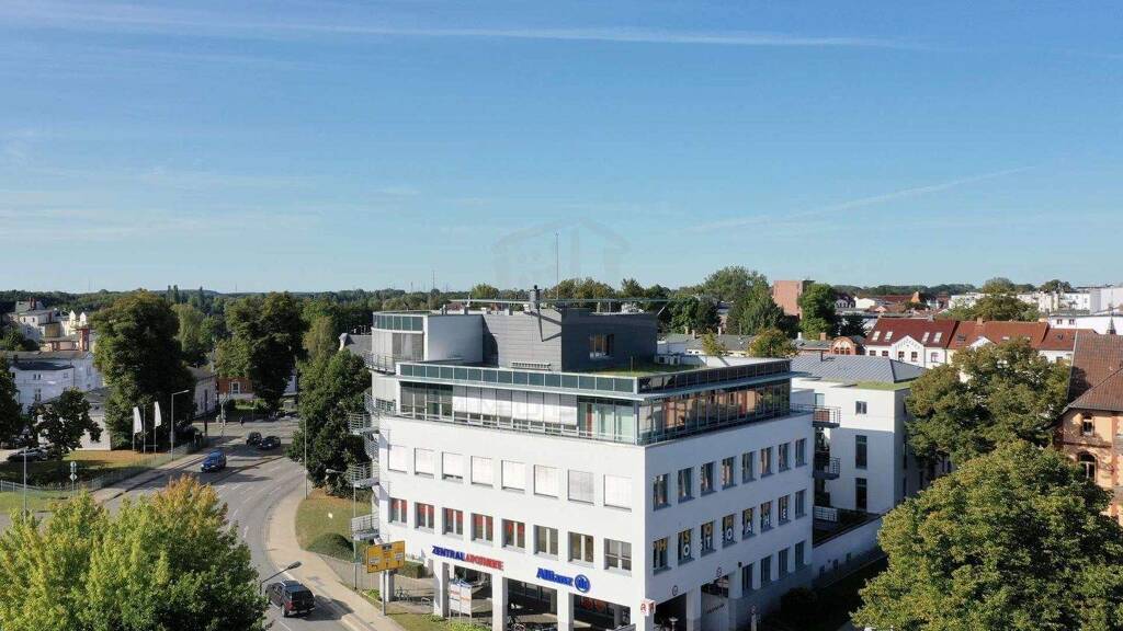 Die hier angebotenen Praxis- und Büroflächen (234,02?m²) befinden sich in einem mehrstöckigen Ärzte- und Geschäftshaus im Zentrum Schwerins und wurden 2023 aufwendig saniert. Die angegebene Fläche setzt sich aus der reinen Nutzfläche sowie anteiligen Gemeinschaftsflächen zusammen. Große Fenster sorgen für helle, freundliche Räume und ein angenehmes Arbeitsumfeld.