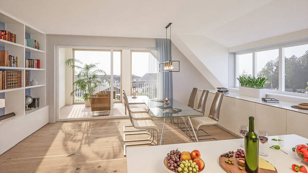 Der Baubeginn ist im September erfolgt! Die größte und schönste Wohnung in Haus 1. Stilvolles Wohnen über 2 Geschosse, nach dem Muster eines Ateliers, so zeigt sich innerstädtische Lebensart. Im ersten Geschoss befinden sich ein Tageslicht Gästebad mit bodenebener Dusche, ein geräumiges Schlafzimmer, mit herrlichem Ausblick und ein großzügiger Koch-Essbereich als kommunikativer Treffpunkt, mit Zugang auf den überdachten Balkon mit herrlichem Ausblick. Das 2. Dachgeschoss fasziniert mit einem überaus stimmungsvollen Wohnbereich, einem weiteren, überdachten Balkon und einer seitlichen Gaube, die sich ideal als Home-Office- Platz anbietet. Durch die Ankleide gelangen die Eigentümer in das herrlich gelegene Hauptschlafzimmer, mit Bad en Suite (Tageslichtbad mit Badewanne und bodenebener Dusche.) Lassen Sie sich begeistern!