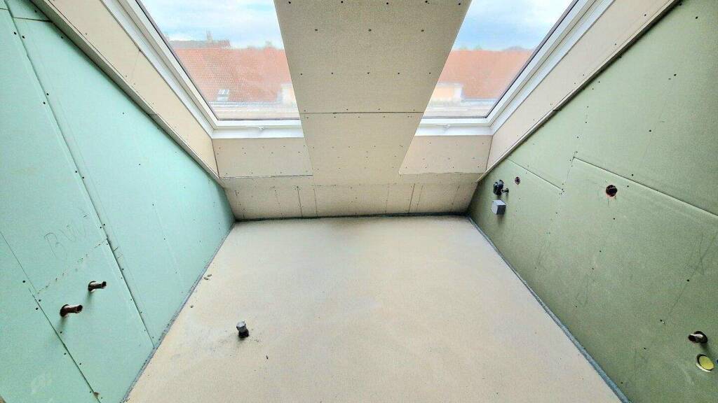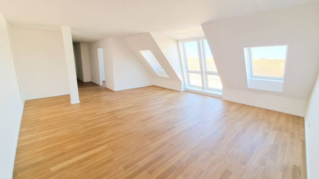 Das Herzstück der Wohnung bildet der lichtdurchflutete Wohn- und Essbereich, der durch seine offene Gestaltung und die großen Fensterflächen eine besonders einladende Atmosphäre schafft. Hier genießen Sie nicht nur stilvolles Ambiente, sondern auch direkten Zugang zu den zwei Balkonen und der Dachterrasse, die einen traumhaften Ausblick über die Dächer der Stadt bietet.