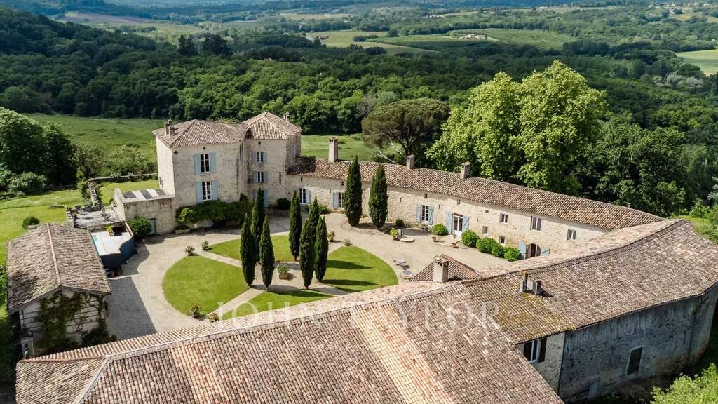 Nichée sur le chemin de Saint-Jacques, cette magnifique propriété du XIIIe siècle offre un emplacement stratégique avec une vue imprenable sur la vallée et la campagne environnante. S'étendant sur 33 hectares de terres, incluant 1 hectare de vignoble AOC, ce domaine produit un vin d'exception, affiné dans la cave voûtée. Le château principal, d'environ 550 m², propose de généreux espaces de vie ouverts sur la cour intérieure et la vallée.