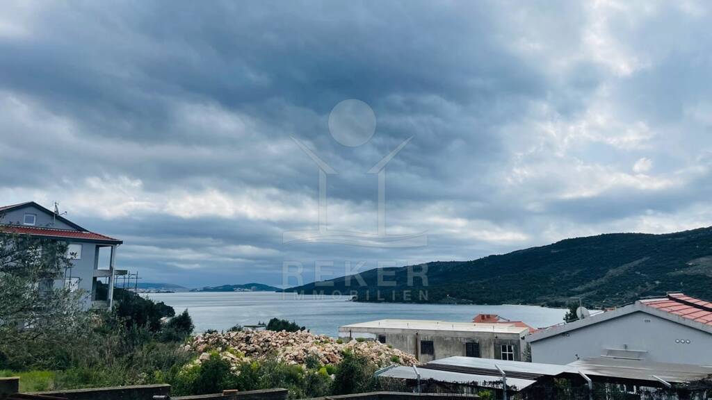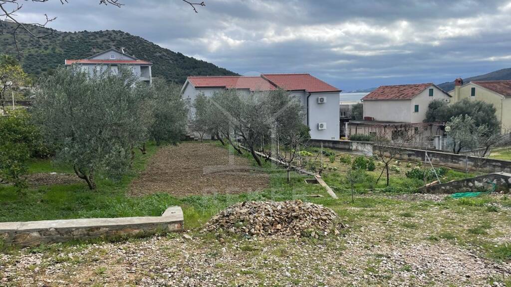 Dieses Baugrundstück liegt in einem ruhigen Ort in der Nähe von Trogir - auf einem sanften Hügel, abseits der Hauptstraße. Die Lage bringt Ruhe, Privatsphäre und ein besonderes Plus: einen schönen Blick aufs Meer. Schon vom Erdgeschoss aus sieht man das Wasser, vom ersten und zweiten Stock erstreckt sich ein beeindruckender Panoramablick.