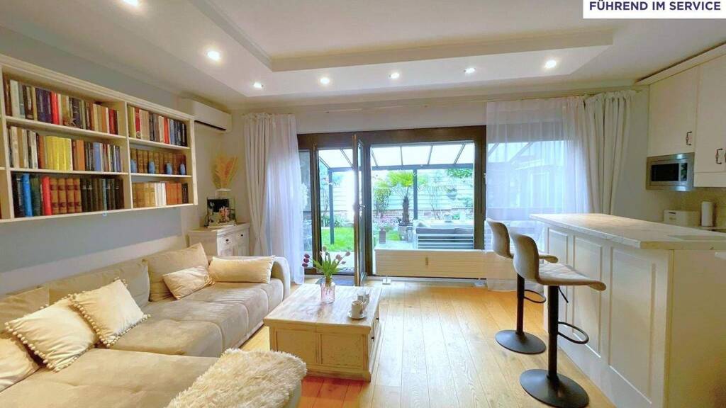 Neben einem ca. 62?m² großen Eigengarten mit Ostausrichtung, der nahezu uneinsehbar ist und zum ungestörten Verweilen einlädt, überzeugt diese stilvolle Wohnung durch eine zentrale Begehbarkeit aller Räume.