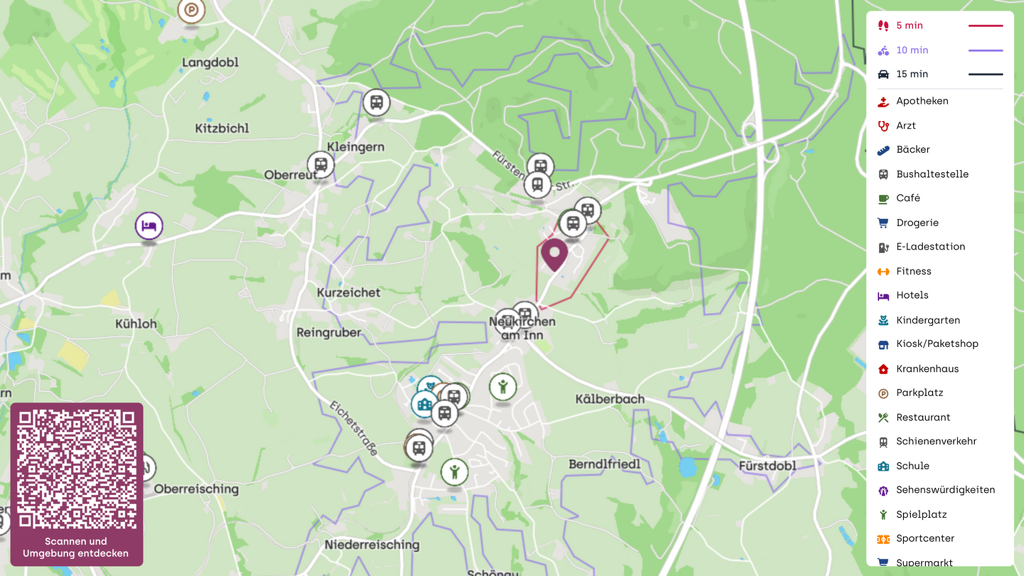 Die Verkehrsanbindung ist dank der Nähe zur Inntalstraße sowie den grenzüberschreitenden Verbindungen nach Österreich sehr gut. Pendler schätzen die unkomplizierte Erreichbarkeit der umliegenden Wirtschaftsstandorte.