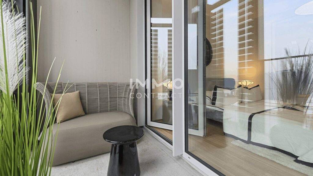 Die großzügige 10 m² Loggia erweitert den Wohnraum ins Freie und wird zur persönlichen Aussichtsterrasse - ideal für entspannte Abende, einen Drink bei Sonnenuntergang oder einfach, um die Skyline auf sich wirken zu lassen.