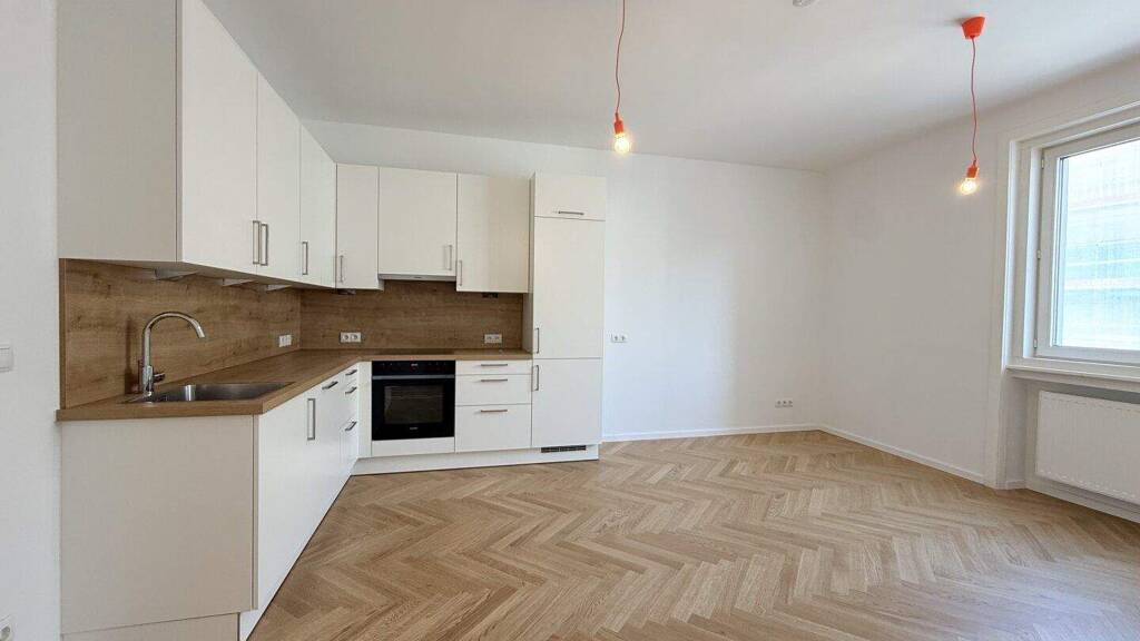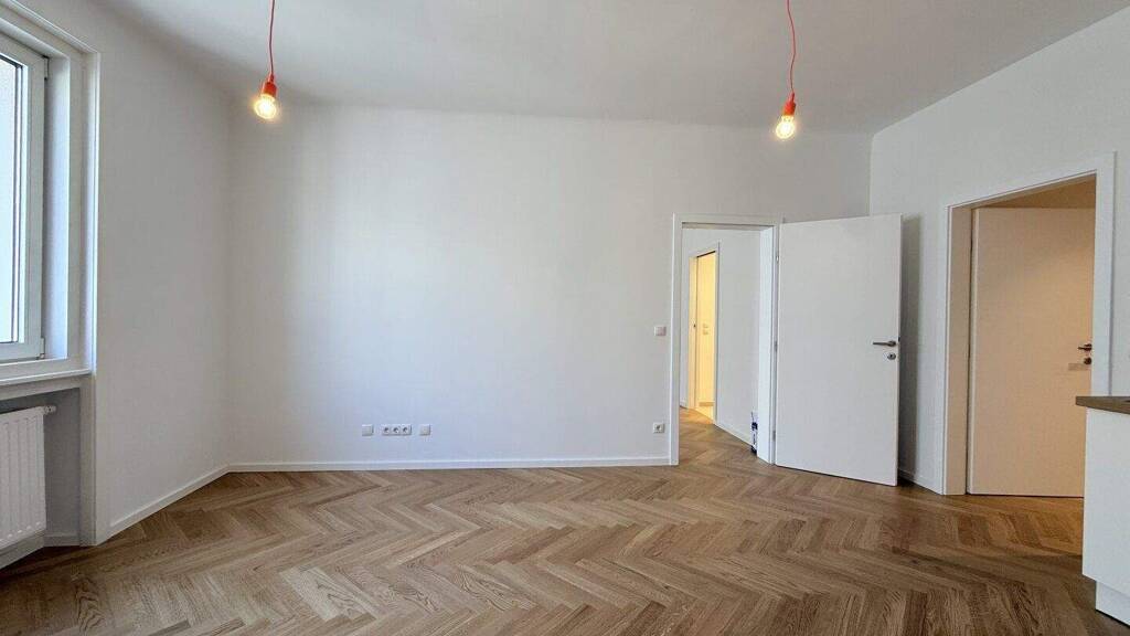 Die Wohnung teilt sich auf in einen großzügigen Vorraum, einem Bad mit Badewanne, einer Wohnküche mit Essbereich, einem Schlafzimmer mit En-Suite Bad mit Dusche und WM-Anschluss, einem WC, zwei weiteren Zimmern und einen Abstellraum.