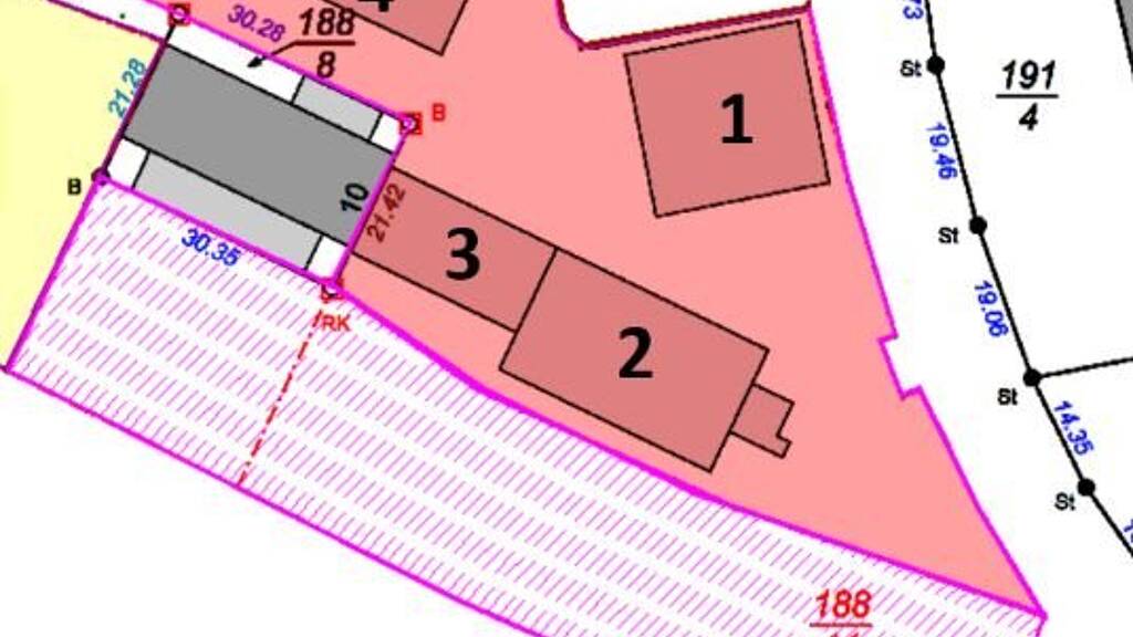 Das zu vermietende Objekt befindet sich auf einer Grundstücksfläche von ca. 4.000 m². Auf dieser Fläche befinden sich 4 Baukörper. Grundstücksgröße: ~ 4.000 m² Gesamtnutzfläche Gebäude: ~ 1.484 m² Gesamtfreifläche (Außenlager/ KfZ-Stpl.): ~ 2.700 m² Potentialfläche (Erweiterung): ~ 3.000 m² Bei Bedarf ist eine Vergrößerung der zu vermietenden Freifläche im Rahmen der magenta schraffierten Außenlagerfläche von ~ 3.000 m² möglich.