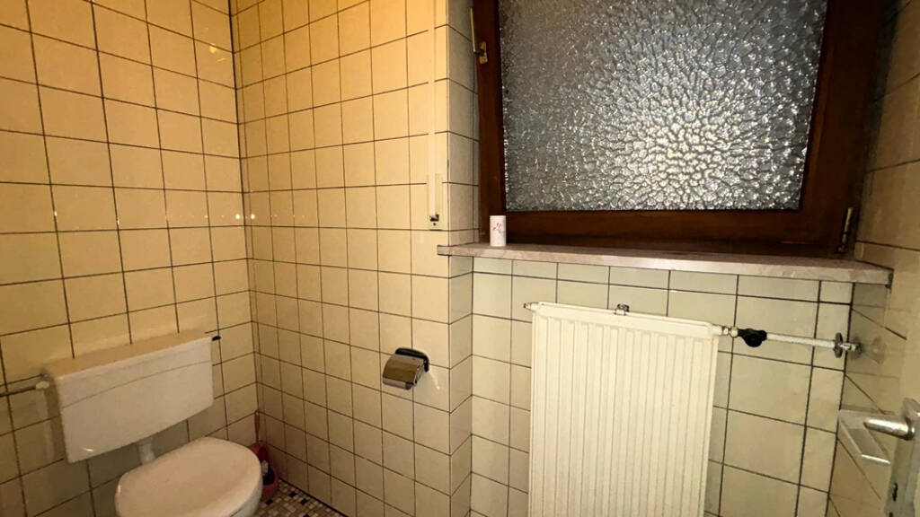 Das Erdgeschoss, ursprünglich als Verkaufsfläche genutzt, wurde teilweise in Wohnraum umgewandelt. Hier befinden sich ein geräumiges Wohnzimmer, das einst als Laden diente, sowie ein weiteres Zimmer. Zudem gibt es eine Dusche, ein Waschbecken und ein separates WC.