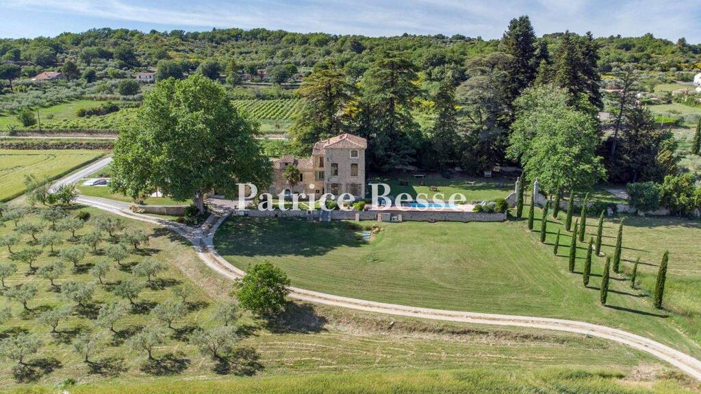 Set back from a small and quiet B road, the property is completely invisible from view. Only a concrete lane gradually reveals its elegant architectural structure, nestled within landscaped grounds and surrounded by approximately 1.5 hectares of farmland. At the end of the lane, a Provencal dwelling, surrounded by grounds planted with a variety of trees, stands behind an ancient Provencal-inspired wrought-iron gate, framed by original stone pillars, proudly marking the property's entrance, which opens onto a cypress-lined drive. As for the 18th-century architectural complex, with an inhabitable floor area of 900 m², it includes an elegantly renovated country house, as well as several outbuildings, today converted into independent accommodations. Carefully and meticulously restored over the years in order to conserve the premises' fundamental character, its original materials - Rognes stone, terracotta floor tiles, ancient doors, wrought-iron details and exposed beam ceilings - were preserved as much as possible. As for the estate's two swimming pools, blending in perfectly with the surrounding environment, they were recently added and enjoy unobstructed views, while an olive orchard with 250 trees yielding satisfactory harvests extends over one hectare and is operated under a land tenancy contract.