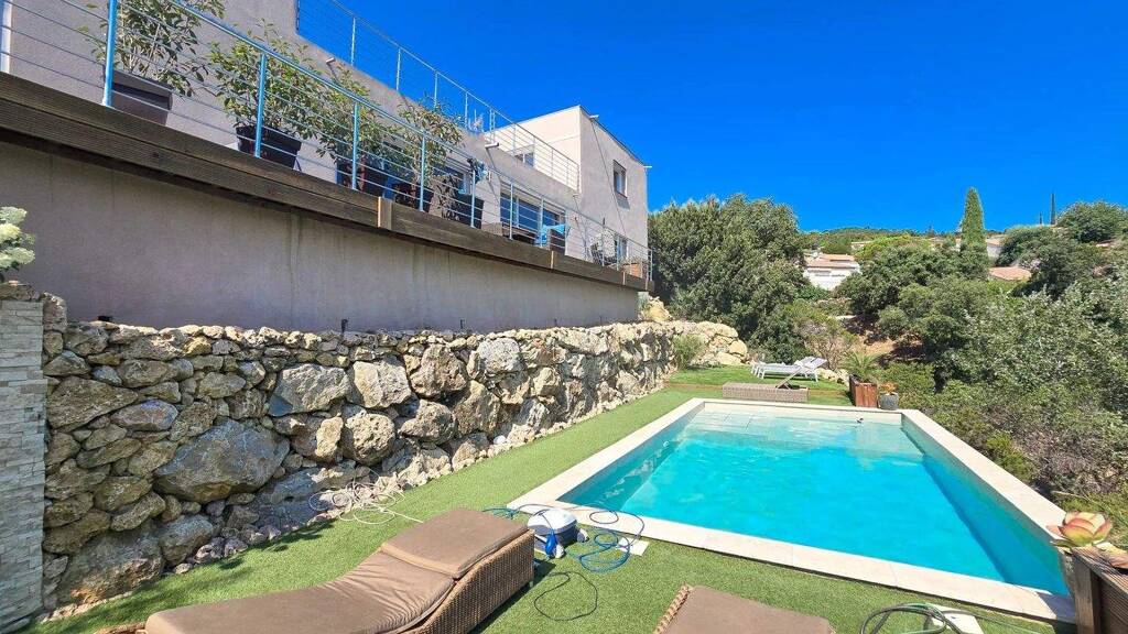 Les Issambres, situation calme, vue dégagée et aperçu mer, découvrez cette villa contemporaine récente et climatisée, de 210m offrant des volumes clairs et spacieux, matériaux de qualité et finitions soignées. Séjour ouvrant sur une terrasse surplombant la piscine, cuisine séparée équipée, suite parentale de 41 m² avec dressing, salle de bains. A l'étage deux suites de 40 m² avec dressing et salle d'eau, toilette. Garage de 36 m². Piscine, terrain de 900m². tout y a été organisé pour un entretien facilité.