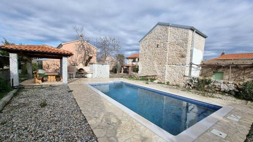 Zum Verkauf steht ein rustikales Steinhaus mit Swimmingpool und großem Garten in der Nähe von Malinska, 4 km vom Meer entfernt. Das Haus befindet sich auf einem Grundstück mit einer Gesamtfläche von 911 m2, mit einem schönen Swimmingpool von 30 m2, einer Sonnenterrasse, einem Außenhaus und einer Pergola für Grillabende und Versammlungen im Freien. Das Haus wurde erbaut und vollständig rekonstruiert, um so viele ursprüngliche Details wie möglich zu bewahren, wie den traditionellen Brunnen und den autochthonen Stein. Es besteht aus zwei separaten Etagen mit jeweils einer Zweizimmerwohnung und schönen überdachten Terrassen mit Blick auf den Garten und die umliegende Natur, verbunden durch eine Außentreppe aus Stein. Einen besonderen Platz im Haus nimmt ein gemauerter Kamin ein, der sich ideal für angenehme Zusammenkünfte an Wintertagen eignet. Es gibt mehrere Parkplätze und zahlreiche mediterrane Pflanzen im Garten. Eine Gelegenheit, ein hochwertiges Landhaus mit schönem Garten und Swimmingpool zu kaufen.