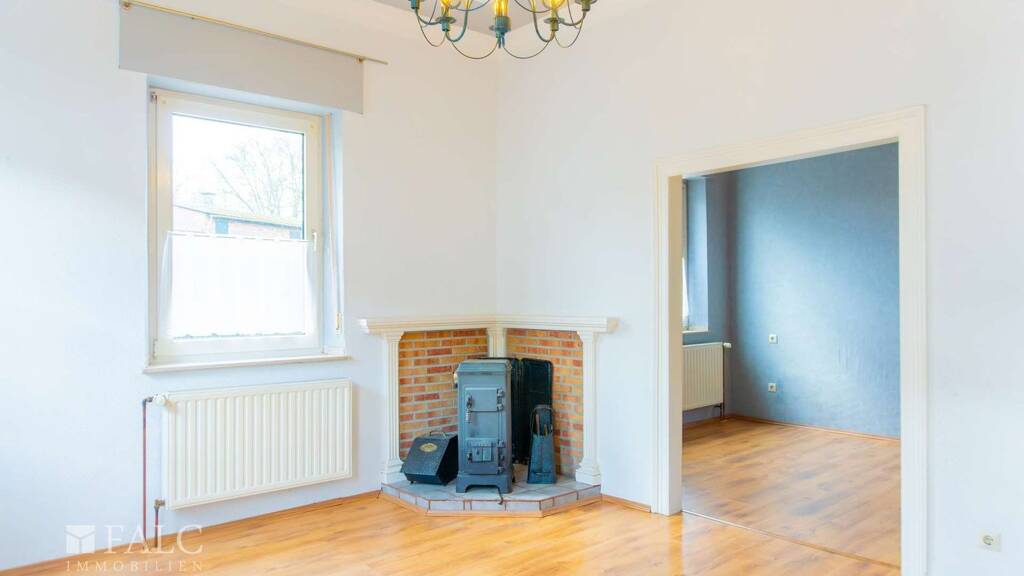 Bereits beim Betreten des Hauses wird der einladende Charakter spürbar. Der großzügige Wohnbereich mit Kamin im Erdgeschoss bildet das Herzstück der Immobilie und sorgt besonders in den kälteren Monaten für eine behagliche Atmosphäre. Die vorhandene Einbauküche ist funktional ausgestattet und bietet ausreichend Platz für gemeinsames Kochen und Genießen.