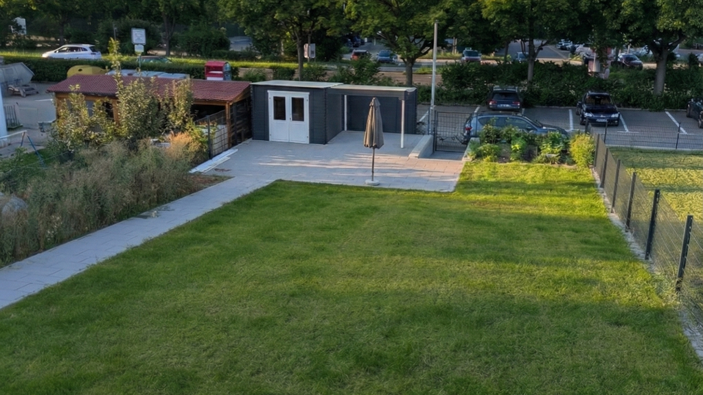 Das Herzstück ist der neu gestaltete Garten auf einem großzügigen Grundstück von 615 qm, das durch Zukauf deutlich erweitert wurde. 239 qm gehören zum Haus, der ganze Garten ist zur kostenlosen Nutzung frei. Er kann nach 3 Jahren per Vorkaufsrecht dazu erworben oder gegen ein kleines Entgelt weiter genutzt werden. Erst letztes Jahr wurde der Außenbereich komplett neu angelegt: Mit stabilen Stützmauern, einladenden Treppen und gepflasterten Wegen, einem praktischen Gartenhäuschen mit überdachtem Freisitz und eleganten Glasgeländern ist hier ein echter Wohlfühlort entstanden, der viel Platz zum Spielen, Entspannen und Gärtnern bietet. Lediglich für Büsche und Bäume hat die Zeit gefehlt. Die überdachte Terrasse sowie ein Südbalkon und ein kleiner Westbalkon laden zu entspannten Stunden im Freien ein.