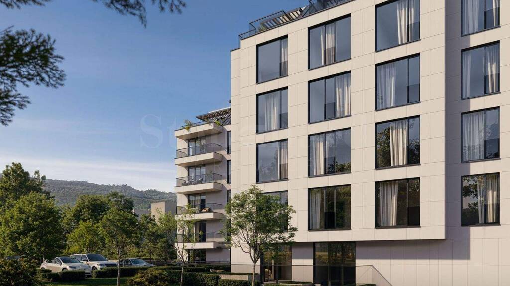 Der Komplex bietet eine Reihe entscheidender Vorteile. Die Architektur ist modern und unverwechselbar, und das Gebäude wurde mit hochwertigen Materialien und viel Liebe zum Detail errichtet. Im obersten Stockwerk befinden sich exklusive Penthäuser, und von ausgewählten Apartments und Penthäusern aus bietet sich ein Panoramablick auf das Witoscha-Gebirge.