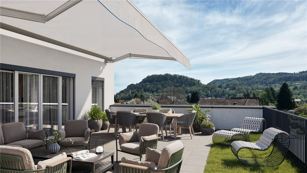 Die Natur vor der (Balkon-)Tür: Der ca.39 m² große Eckbalkon ist ein wahres Juwel, das Ihnen einen fantastischen Rundumblick auf die Gegend eröffnet. Im Süden erblicken Sie den Wildoner Buchkogel, im Westen den sattgrünen Kaiserwald mit den dahinter liegenden Ausläufern der zentralen Ostalpen. Einfach traumhaft! Genauso wie die östliche Ausrichtung, die Ihnen dank Morgensonne perfekte Bedingungen für morgendliche Aktivitäten bietet: eine kleine Yogaeinheit, um den Tag zu begrüßen; gemütlich frühstücken und Zeitung lesen...Alles ist möglich und stimmt Sie Sie mit Gelassenheit auf die Stunden ein, die vor Ihnen liegen. Ein Paradies wie sie es sich wünschen. Ein idealer Platz auch für Homeoffice-Begeisterte.