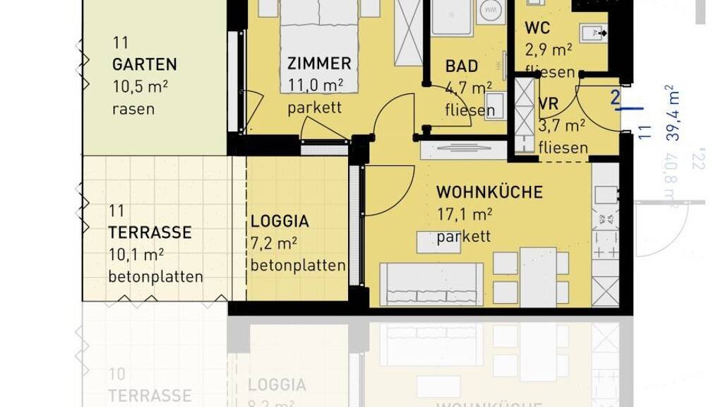 2 Zimmer  •  39,4 m²  •  EG  •  frei ab 30.06.2028