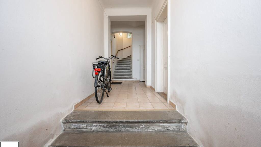 Das Gebäude ist ein typischer Altbau und verfügt über ein Hochparterre sowie einen 1.Stock. Die Wohneinheit im Hochparterre ist 59 m² groß und besteht aus einem Zimmer, einem Kabinett, einer Küche, einem Badezimmer sowie eine WC. Im 1. Stock befindet sich eine ca. 82 m² große 3 Zimmer Wohnung mit ähnlicher Aufteilung und Ausstattung zusätzlich einer Terrasse und einem Rasen. Beide Wohnungen sind derzeit vermietet und fallen nicht in das Mietrechtsgesetz.