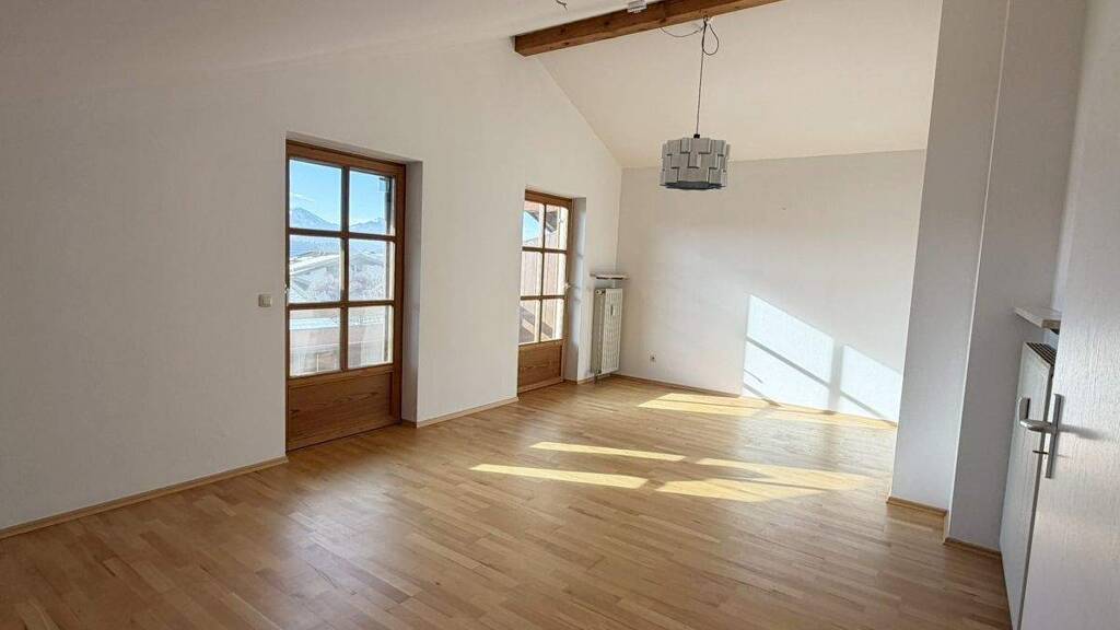 Im 2. Obergeschoss liegen ein großes Schlafzimmer sowie ein Badezimmer mit Dusche und Badewanne. Vom Schlafzimmer aus besteht Zugang zu einem Südbalkon mit sehr schönem Bergblick. Über wenige Stufen ist ein weiterer kleiner Raum mit Mansarde und zwei Dachfenstern erreichbar, der beispielsweise gut als Büro genutzt werden kann.