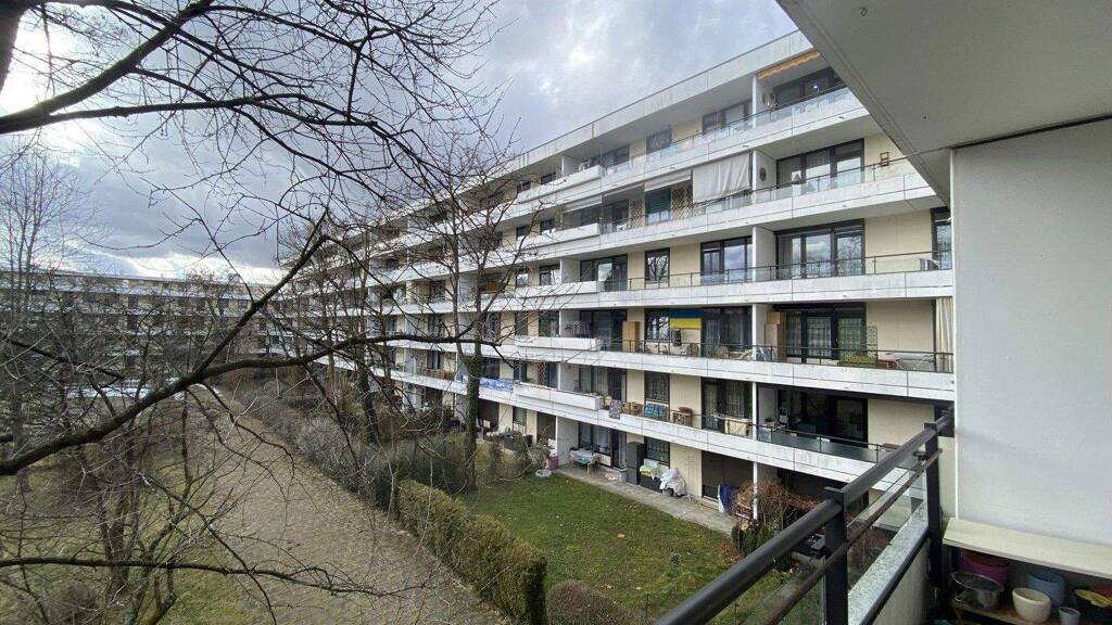 Die Wohnung im 2. Stock erreichen Sie per Aufzug und über einen Laubengang. Der Eingang zur Wohnung selbst befindet sich in einem weiteren Treppenhaus. Wohnzimmer und Schlafzimmer liegen auf der Seite des großzügigen, begrünten Innenhofes. Der 12 qm Süd-Balkon ist sowohl vom Wohnzimmer als auch vom Schlafzimmer aus begehbar. Die Küche mit bereits vorhandener Einbauküche ist groß genug für eine Sitzgruppe und im Bad mit Badewanne ist Platz für eine Waschmaschine. Zur Wohnung gehört ein abgeschlossenes Kellerabteil.