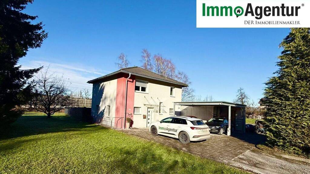 Der Außenbereich ist praktisch und pflegeleicht gestaltet. Auf der südöstlichen Grundstücksseite befinden sich ein großzügiges Carport sowie ein separater Fahrradschuppen. Der Garten bietet insbesondere für Familien vielseitige Nutzungsmöglichkeiten - das leicht modellierte Gelände im nördlichen Bereich schafft Raum für individuelle Gestaltungsideen, Spiel- oder Erholungsflächen.