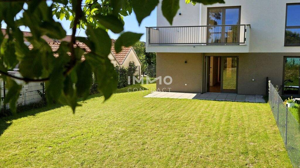 Haus 8 / Top 2 Diese großzügige 4-Zimmer-Wohnung punktet mit ihrem ca. 300 m2 großen Garten und Privatsphäre und ist nach Südosten ausgerichtet. Sie besteht aus einem großen Wohn-Esszimmer mit integrierter Küche und Ausgang auf die ca. 16 m2 große Terrasse und den Garten. Die 3 Schlafzimmer zeigen in den eigenen Garten nach Süden. Das Bad mit Badewanne, Dusche und Waschmaschinenanschluss ist zeitlos weiß verfließt. Das große Vorzimmer und der Abstellraum bieten viel Stauraum. Ein separates Gäste-WC ist ebenfalls vorhanden. Der Wohnung ist ein ca. 8 m2 großes Kellerabteil zugeordnet.