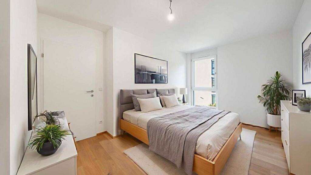 - Hochwertige Ausstattung: Premium-Parkett in Wohn- und Schlafräumen sowie Diele, elektrische Raffstores in der gesamten Wohnung