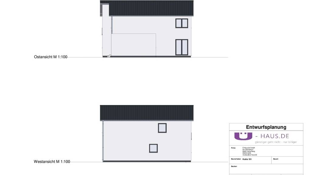 Die Häuser der Reihe Kubis sind als zweigeschossige Bauten mit Pultdach konzipiert. Sie sind das Resultat der Bemühung um maximale Funktionalität, klare Linien und einen individuellen Stil. Die Deckenhöhe im Obergeschoss ist nicht durch die Dachschräge eingeschränkt, so dass dieses Stockwerk eine ebenso vollwertige Wohnfläche wie das Erdgeschoss bietet.