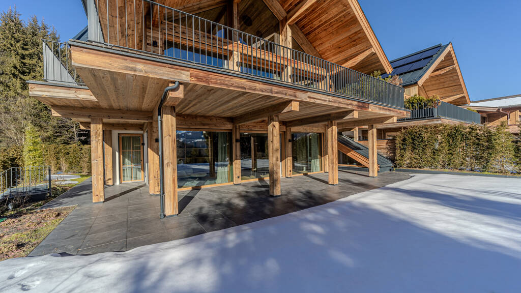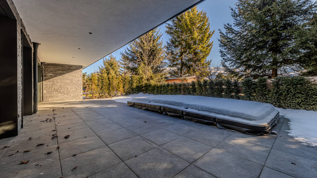 Eine große Terrasse samt Gartenfläche samt automatischer Bewässerung mit Blick auf die Kitzbüheler Bergwelt und mit viel Privatsphäre laden geradezu zum Verweilen im Freien ein. Die untere Etage beheimatet neben zwei weiteren Gästesuites auch den fantastischen Wellnessbereich mit großen Fensterfronten die den Blick auf den beheizbaren Swimmspa mit Gegenstromanlage mit automatischer Dosieranlage und die umliegende Kitzbüheler Bergwelt frei geben. Hier werden sich Sie und Ihre Familie oder Ihre Gäste mit Sicherheit sehr wohl fühlen. Selbstverständlich gibt es im eigenem, circa 24 m² großem und voll ausgestatteten Kellerabteil auch genügend Stauraum für Ihre Schi, Snowboards oder Golfbags und natürlich eine Tiefgarage mit drei äußerst großzügigen Abstellplätzen, von der aus Sie Ihre Immobilie bequem mit dem Lift direkt erreichen.