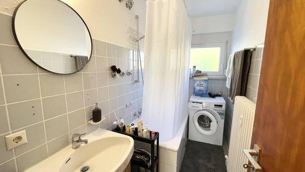Das Tageslichtbad ist mit einem Waschbecken und einer Badewanne ausgestattet - das WC ist separat.
