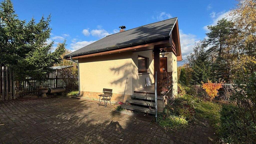 Hier sucht ein massives Gartenhaus neue Lieblingsmenschen, die die Sommermonate gerne nah an der Natur verbringen oder einfach über´s Wochenende eine kleine Auszeit brauchen. Auf einer Grundstücksfläche von 451m² steht das massive, voll unterkellerte Gartenhaus mit 2 Etagen. Die Wohnfläche beträgt 29,4m². Im Erdgeschoss befindet sich der Wohnbereich, die Küche und das WC. Über eine Wendeltreppe gelangt man in die obere Etage. Dort befinden sich die Schlafmöglichkeit und ein kleiner Balkon in Richtung Süd-Osten. Im Haus ist eine neuwertige moderne keine Einbauküche vorhanden. Im Keller wurden der Warmwasserbolier und eine Dusche eingebaut, alle Wasserleitungen sind erneuert worden. Die zentrale Warmluftheizung befindet sich im Keller. Das Prefa-Dach sowie die Fassade sind neuwertig. Der Fußboden ist in der unteren Etage mit Laminat belegt und oben mit Holzdielen versehen. Das kleine Häuschen ist gut erreichbar. Ein gepflasterter Parkplatz ermöglicht das Parken im Gelände für 1 bis 2 Autos. Hier kann man es sich richtig gut gehen lassen und die Seele baumeln lassen. Im Grundstück befinden sich einige Obstbäume z.B. Apfel- Mirabellen- und ein Kirschbaum, Heidelbeer- und Sanddornsträucher. Genießen sie die Ruhe und die schöne Aussicht auf unser Erzgebirge. Ein dauerhaftes Wohnen ist durch das Abstellen des Wasserzulaufes in den Frostmonaten leider nicht möglich.
