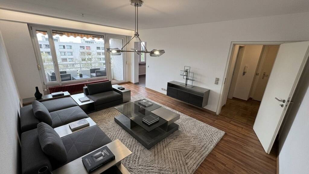 Der Wohnbereich wirkt durch die Lage besonders hell und einladend und bietet ausreichend Platz für eine gemütliche Sofalandschaft sowie einen Essbereich. Von hier aus gelangen Sie auf den Balkon, der zusätzlichen Raum im Freien bietet und sich ideal zum Entspannen eignet.