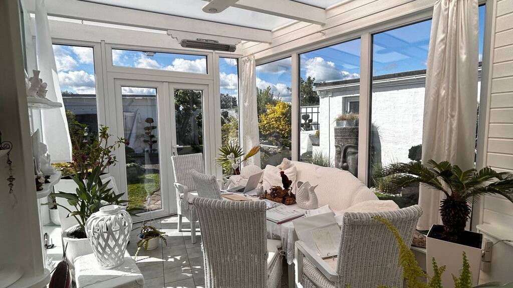 Exklusives Reetdachhaus in Greifswald-Wieck mit 2 Wintergärten, Koiteich & Nebengebäude