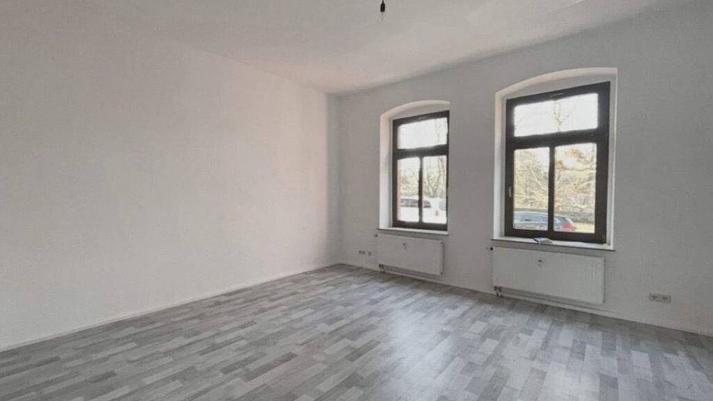 GroĂźe Fenster sorgen fĂĽr viel Tageslicht und den Blick ins GrĂĽne. Die Wohnung wurde frisch saniert und modernisiert und ist sofort bezugsfertig.