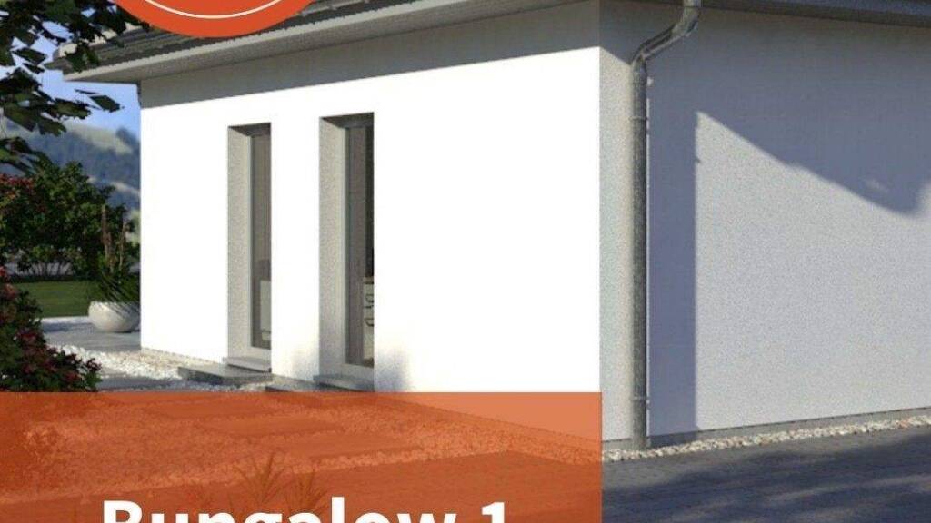 Unser Bungalow 1 Walmdach bietet auf einer Wohnfläche von 107 m² alles, was die Kleinfamilie zum Wohnen und Wohlfühlen benötigt. Das kombinierte Wohn-Ess-Zimmer ist großzügig geschnitten und dank drei Glastüren zum Garten hin schön hell. Auch die vom Esszimmer türlos zugängliche Küche bietet genügend Platz und Tageslicht. Der angrenzende, 10 m² große Hauswirtschaftsraum ist auch direkt von außen betretbar und hat dadurch gleich in doppelter Hinsicht einen praktischen Nutzen: Einkäufe können auf diese Weise direkt versorgt werden und die Wohnräume bleiben von möglichen Schmutzschuhen verschont. Der ebenfalls geräumige Flur verbindet den Wohnbereich des Hauses mit den privaten Rückzugsorten: dem Bereich der Eltern mit Schlafzimmer und angeschlossener Ankleide und einem lichtdurchfluteten Kinderzimmer. Ein voll ausgestattetes Bad mit Badewanne und Dusche sowie ein Gäste-WC runden das Angebot ab.