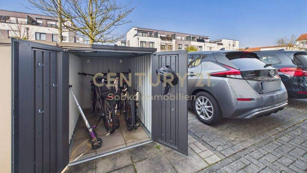 Bereits vor dem Haus stehen zwei PKW-Stellplätze zur Verfügung, einer davon mit eigener Wallbox für Ihr Elektrofahrzeug. Fahrräder können sicher und wettergeschützt in der Fahrradbox untergebracht werden. Der nach Süden ausgerichtete Garten erweitert den Wohnraum an sonnigen Tagen und bietet Platz zum Entspannen, Spielen oder Grillen.
