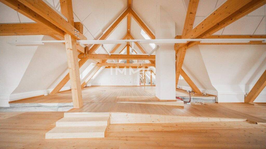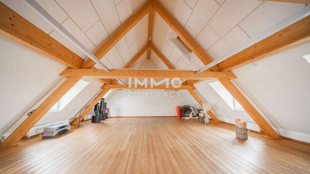 Die Räumlichkeiten sind einfach und vielseitig unterteilbar und zeichnen sich außerdem durch eine großzügig durchdachte Grundrissgestaltung sowie lichtdurchflutete Räume aus. Die freigelegten Fachwerkbalken geben dem Objekt einen gemütlichen Kontrast zur sonst modernen Flächenausführung.