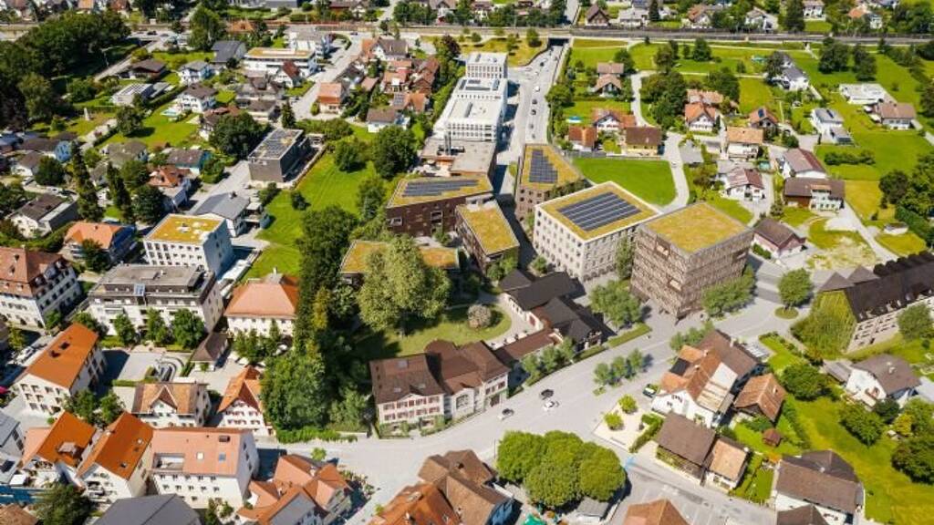 Neben dem neuen Rathaus für die Stadt Hohenems werden vier weitere neue Gebäude mit einem straßenseitigen gewerblichen Fokus und einem Fokus auf Wohnnutzung dem Areal innenliegend gebaut.