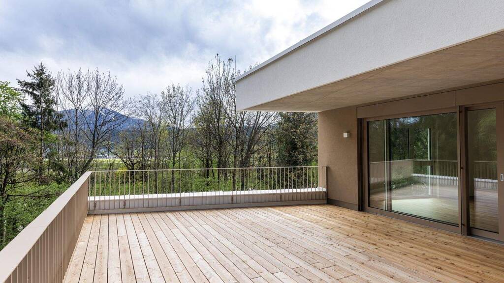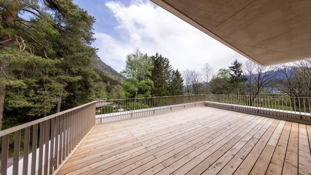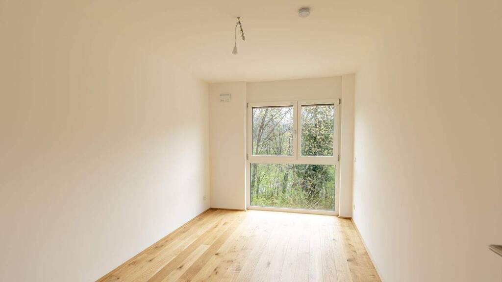 Die Wohnung ist hochwertig ausgestattet: großformatige 60x60 Feinsteinzeugfliesen, edle Landhausdiele, moderne Sanitärelemente und weiße Holztürzargen sorgen für ein elegantes Wohngefühl. Für zusätzlichen Komfort sorgen Fußbodenheizung, Alu-Raffstores als Sonnenschutz sowie zwei großzügige Balkone und eine Terrasse. E-Ladestationen in der Garage sind nachrüstbar, und eine Photovoltaik-Vorrüstung ist bereits vorhanden.