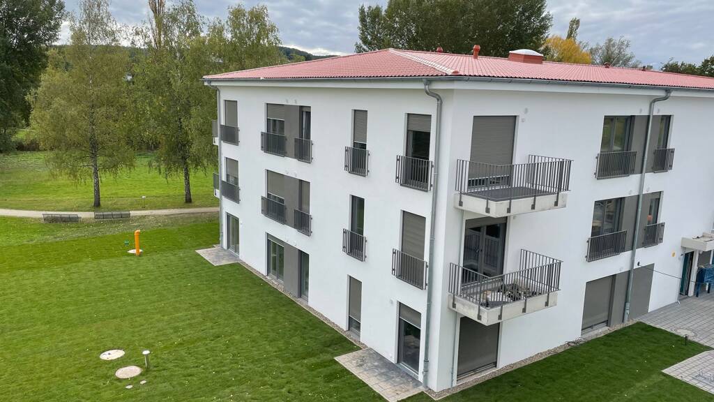 Die angebotene Wohnung befindet sich in einem von zwei Mehrfamilienhäusern, die eingebettet sind in ein komplettes Wohnquartier, welches die DFK in Bad Rodach entwickelt. Dabei entstehen in fünf Bauabschnitten insgesamt 160 Wohnungen in Mehrfamilienhäusern und 15 Reihenhäuser. Die im ersten Bauabschnitt erstellten zwölf Zwei-Zimmer- und 28 Drei- Zimmer-Wohnungen bieten Wohnflächen zwischen 46 und 76 Quadratmetern. Jede Wohnung verfügt über einen eigenen Weg ins Freie, entweder über eine Terrasse oder einen Balkon.