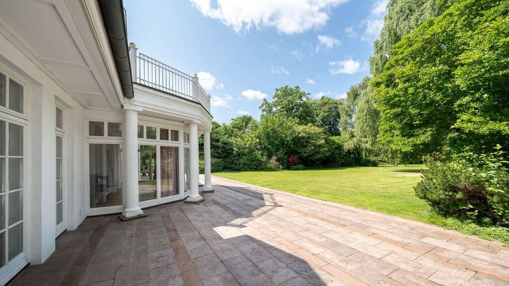 Die klassische Architektur, hohe Decken, Raumfolgen und eine kompromisslose Großzügigkeit prägen im Zusammenspiel mit dem breiten Parkgrundstück den besonderen Charakter dieser Immobilie.