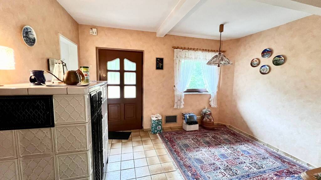 Das Haus wird mit Öl beheizt, zusätzlich steht ein großer Kachelofen in der Diele zur Verfügung.