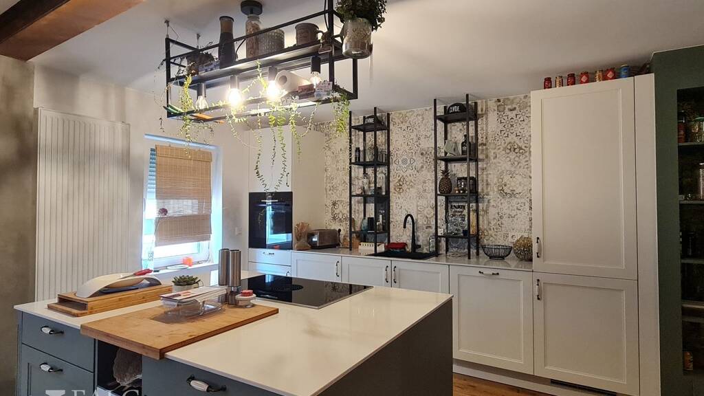 Im oberen Bereich des Hauses wurde edles Parkett verlegt, das für eine warme und einladende Atmosphäre sorgt. Die moderne Küche mit Kochinsel ist ein Traum für jeden Hobbykoch und lädt zu geselligen Kochabenden ein. Zusätzlich gibt es eine voll ausgestattete Küche in der separaten Ferienwohnung, die sich ideal für Gäste oder als zusätzliche Einkommensquelle eignet.