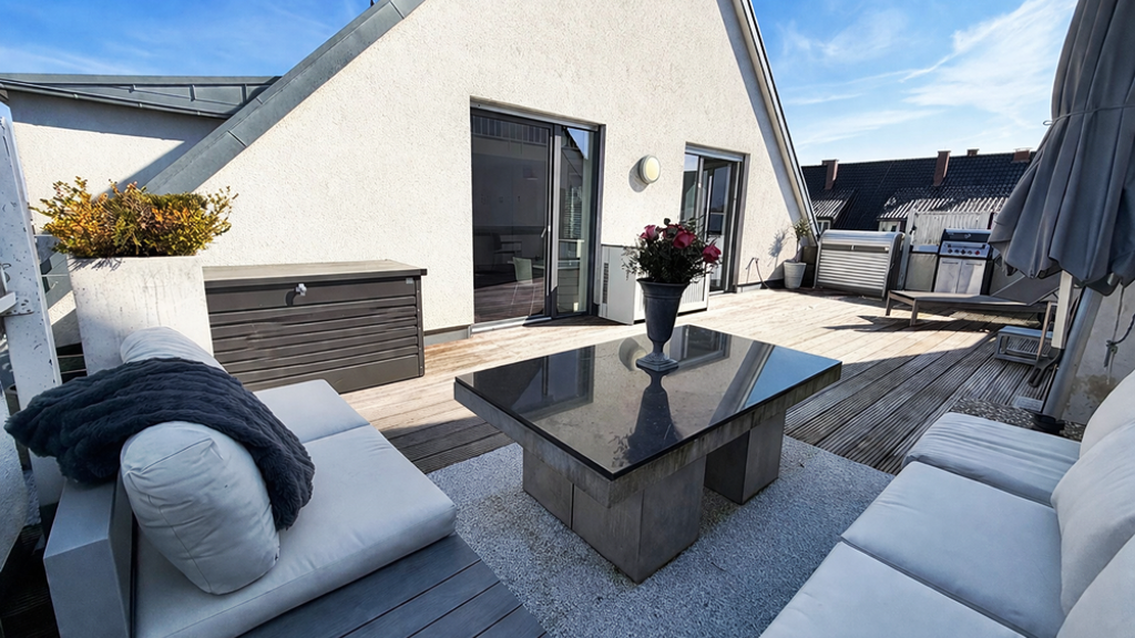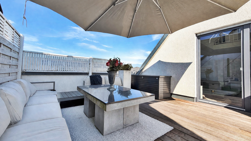 - Luxuriöse Maisonette-Galeriewohnung (Haus im Haus) - Begehrte Wohnlage von Stuttgart-Vaihingen - Im Jahr 2012 erbaut, neuwertiger Zustand - Großzügige Traumterrasse, absoluter HIGHLIGHT! - 138 qm Wohn/- Nutzfläche nach DIN, erweitert auf ca. 148 qm - Über 5 Meter Deckenhöhe im Wohnbereich - Hochwertige Einbauküche mit Granit & Markengeräten - Maßgefertigte Einbauschränke vom Schreiner - Fußbodenheizung in der gesamten Wohnung - Tageslichtbad hochwertig ausgestattet - Zweites Bad auf unterer Ebene - Französischer Balkon - Bequem über ein Aufzug erreichbar - Überbreiter TG-Stellplatz (XL) zzgl. 30.000 € - Optionale Übernahme von Design- und Terrassenmöbeln - Großer Kellerabstellraum ist der Wohnung zugeordnet - Klimaanlage (optional) - Hausmeister-Full-Service inkl. Kehrwoche sowie Winterdienst