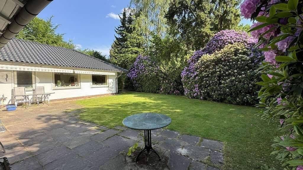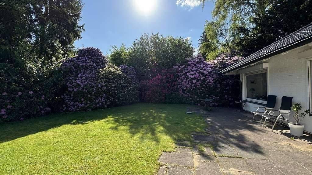 Dieses Grundstück bietet ein außergewöhnliches Maß an Privatsphäre. Über eine lange Zufahrt erreichen Sie das rückwärtig gelegene Haus, eingebettet in einen weitläufigen und kaum einsehbaren Garten.