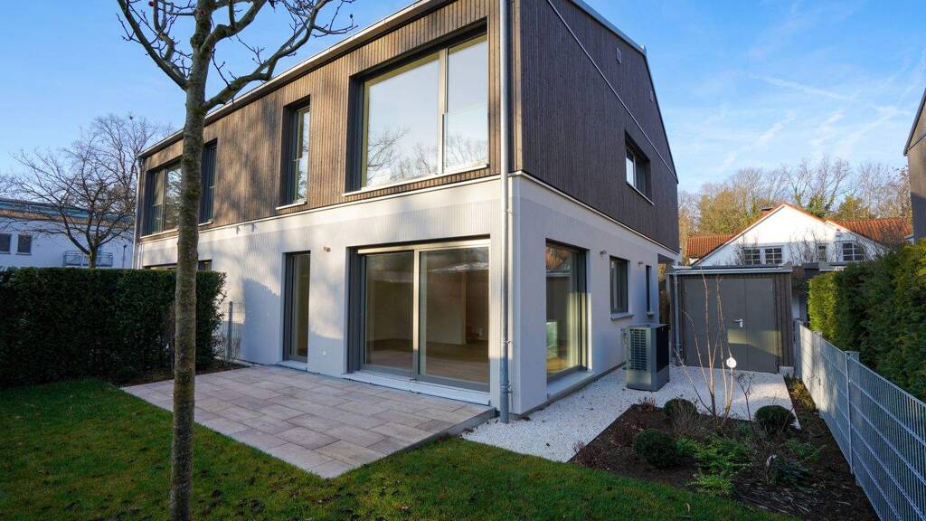 Diese architektonisch außergewöhnliche Stadtvilla wurde von einem renommierten Erlanger Architekturbüro entworfen und 2025 in ökologischer Holzbauweise fertiggestellt. Das Ensemble besteht aus insgesamt vier Häusern, die über einen Privatweg zu erreichen sind. Außen prägen handwerklich gezogener Kammstrichputz, vertikale Holzverschalung und das abgeflachte Satteldach den Charakter des Gebäudes. Dach, Fenster und Haustüre sind im exakt abgestimmten RAL-Farbton ausgeführt und schaffen ein harmonisches, durchdachtes Gesamtbild. Innen beeindrucken Raumhöhen zwischen 2,75 m und 5 m sowie eine sehr hochwertige Ausstattung.